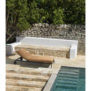 Modern and sensual, the lounger of the Leaf collection is a call to enjoy moments of relaxation in the garden. The soft and wide cushioning lies on the lightweight aluminum frame, offering comfort and durability. Inspired by the natural world, this piece of furniture has the ability to dialogue with the outdoor environment, integrating with it and giving a touch of elegance.