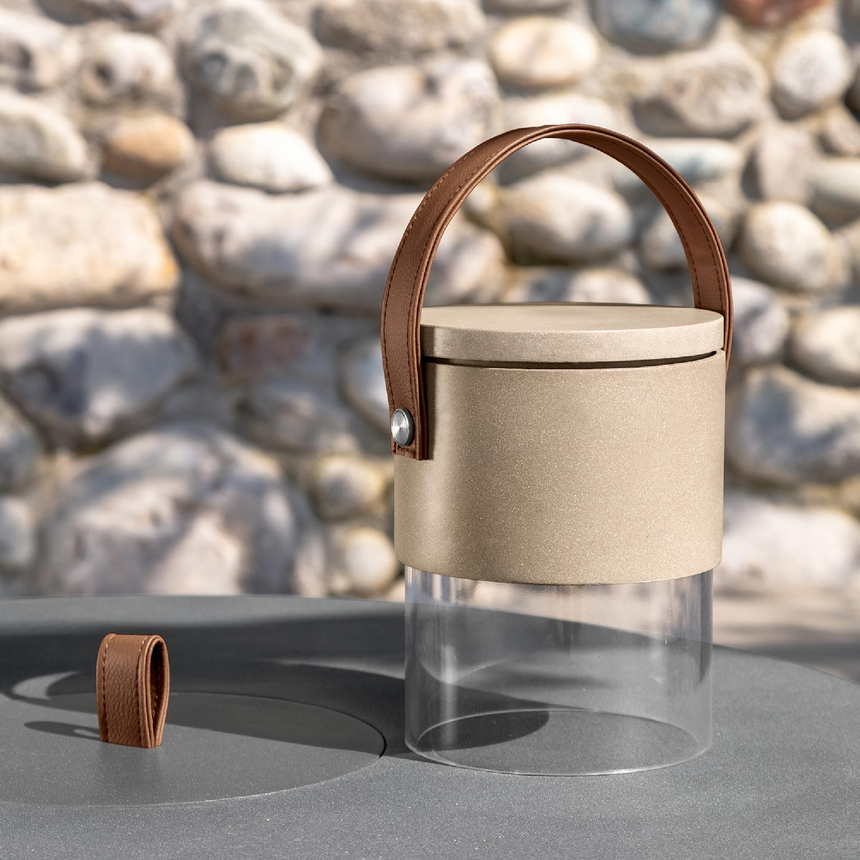 The Kukà lamp is a piece of furniture made with eco-friendly materials and is characterized by a design that can be matched to any style and environment. The methacrylate base of the rechargeable lamp diffuses the light and supports a circular resin element.