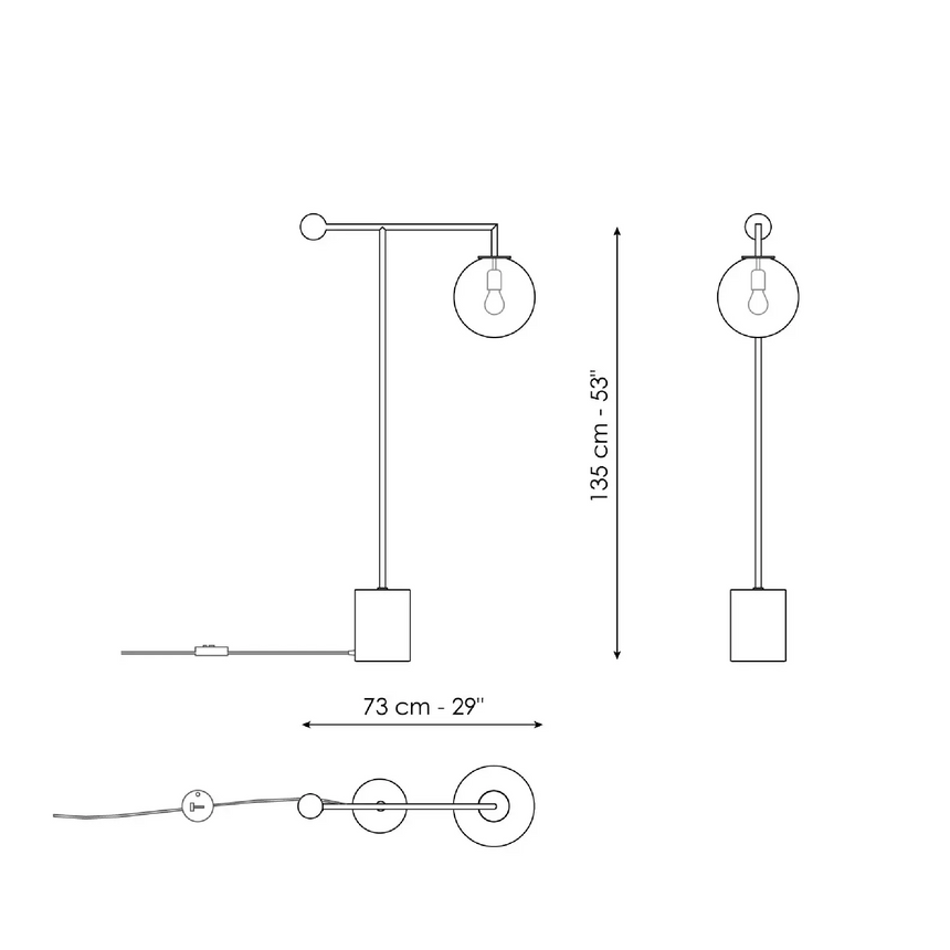Lampshade: Glass (Transparent) - Frame: Plus metal - Base & Sphere: Plus metal (Matte brass) - Light bulb: E27- 220-240V n°1 - E26 (110V) - Max: 15w