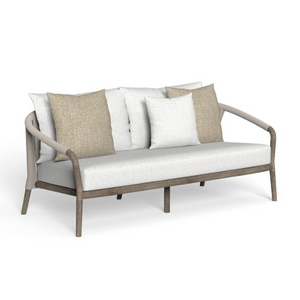 Curved Arm Teak Outdoor Sofa | Talenti Parker - Natural Teak/Inkas White is backordered and will ship as soon as it is back in stock.