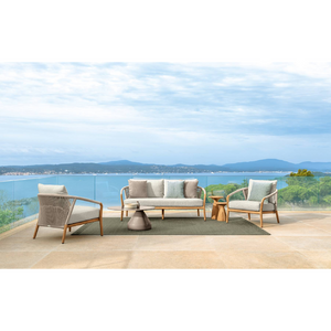 The two-seater sofa from the Parker collection is characterized by a modern and elegant design. It is composed of a teak wood structure and curved armrests that add refinement. The cushions are present in neutral shades, creating a welcoming and harmonious visual effect making this sofa ideal for contemporary and bright outdoor spaces.
