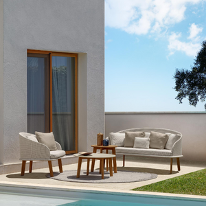 The CleoSoft Wood outdoor lounge armchair is characterized by a flexible and comfortable seat. Completely in line with the other round-shaped modules of the collection, it can also be matched with the more geometric and voluminous ones. The cushions, padded in quick dry foam, are supported by a wooden frame. The removable covers, are easy to wash and weather resistant.