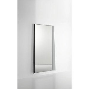 A stand-out, eye-catching piece featuring a bronzed or smoked glass frame that merges with the slightly folded mirror to become a single element. The frame, which is narrower at the top and gradually widens towards the base, creates two “wings” at the sides, producing an optical effect that gives the design wall mirror a feeling of lightness and movement. Fold is available with a bronzed glass frame and bronze effect mirror or with a smoked glass frame and lead effect mirror.