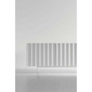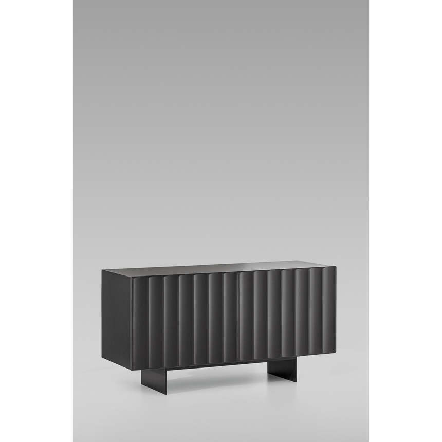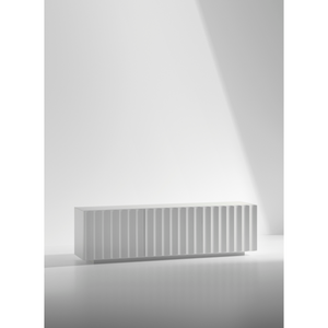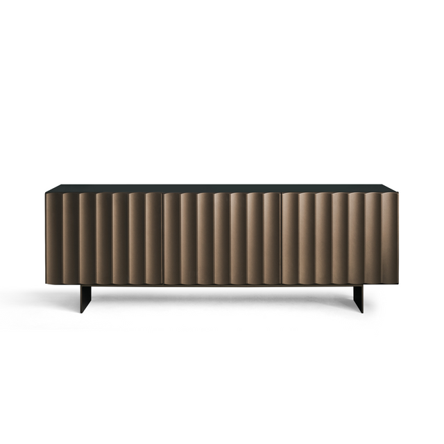 The signature feature of the Dorian contemporary sideboard is the wide vertical groove highlighted in its doors. The sense of movement thus created by the doors of the Dorian sideboard breaks up the linearity of the wall on which it rests, thus adding visual appeal to the intrinsic function of the sideboard. The doors and frame of this sideboard are made of wood, a material which adds elegance to the overall look, painted in white, bronze or lead finishes. The base is available in the version with two feet for a lighter visual effect or in the version with a plinth for a more compact look.