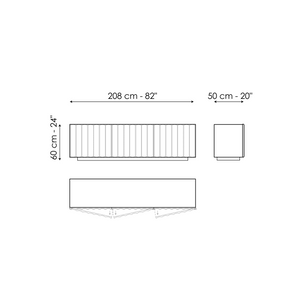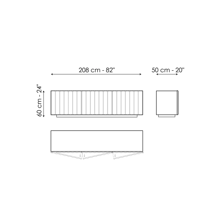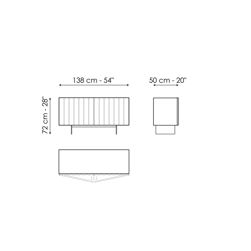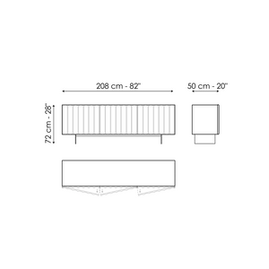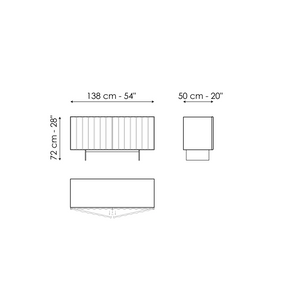 54"W: W54 x D20 x H28 in | W138 x D50 x H72 cm - 82"W: W82 x D20 x H28 in | W208 x D50 x H72 cm