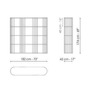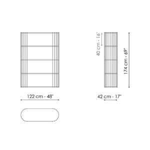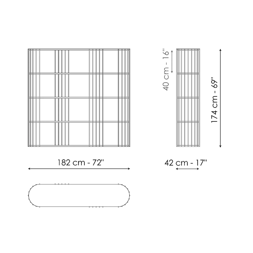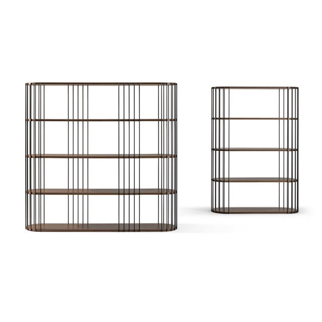 A versatile instrument for contemporary furnishing, Arpa displays a “musical design” that lends itself to infinite interpretations, combining visual lightness and functionality of use. The design bookcase, whose name in Italian means “Harp”, is characterized by the sequence of metal uprights arranged along the perimeter, which acts as a structure and support for the wooden shelves which run uninterrupted along the entire length and width of the piece. The rounded ends of the shelves soften the profile of the bookcase, making it ideal for any space, whether domestic or otherwise.