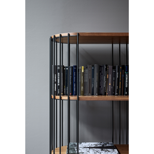Metal Rods Bookcase | Bonaldo Arpa - 48"W x 17"D x 69"H / Canaletto Walnut / Matte White is backordered and will ship as soon as it is back in stock.