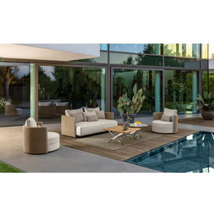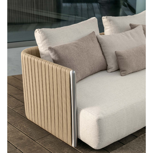 The detail of the visible stainless-steel uprights and the padded belts make the George 2-seater sofa the ideal piece of furniture for spending moments of relaxation and harmony in your outdoor living space. Generously padded seat and back cushions and fabrics available in different colors make the George sofa comfortable and welcoming.
