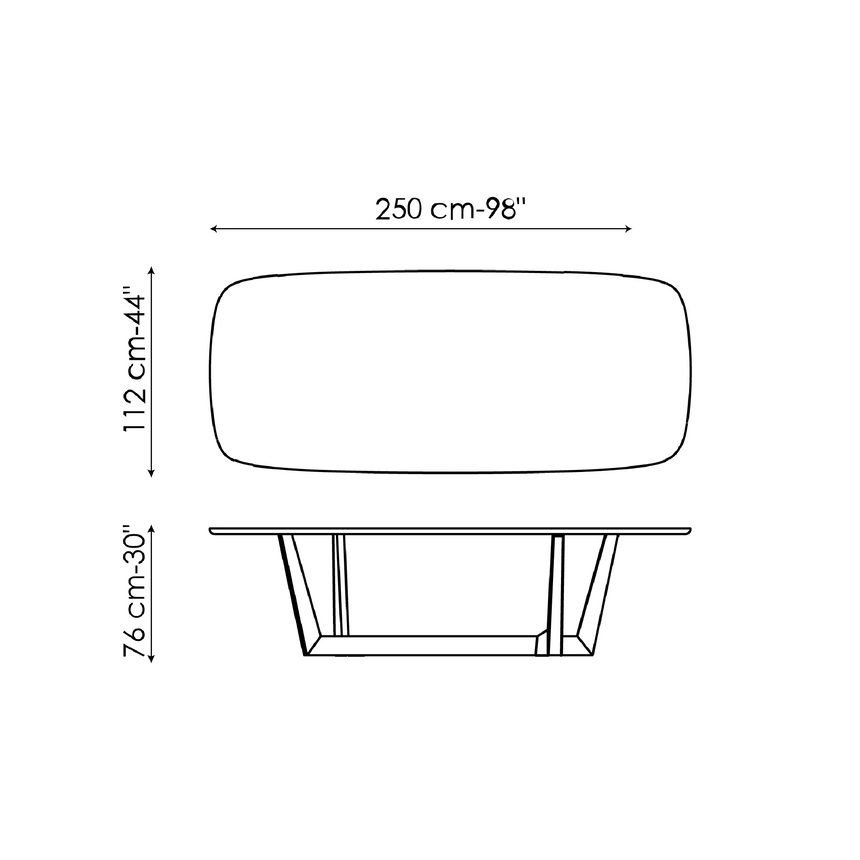 The base of the Art table is its most distinguishing feature: it is made of a metal trapezium that runs diagonally under the tabletop, allowing minimum obstruction and optimizing the space. Overall, the load-bearing structure designed in this way stands out for its high levels of dynamism, solidity and sculptural impact. The top is firmly supported but the final effect is one of great lightness.
