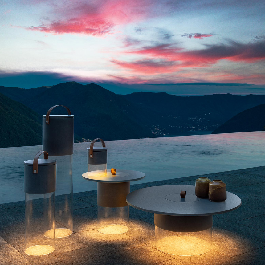 Round Outdoor Lamp Coffee Table | Talenti Kukà - 20"Dia x 17"H / Graphite is backordered and will ship as soon as it is back in stock.