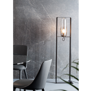 A metallic architectural structure, painted in elegant bronze or lead shades, encloses the blown glass of the lampshade in all its finesse: contrasting elements that encounter one another in the Bio-s collection of lamps, designed by Studio Team Design, in an expression of three-dimensionality and perspective.