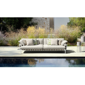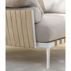 Elevate your outdoor space with the Salinas Sofa from Talenti. Designed with a delicate color palette inspired by the beach of Salinas in Ibiza, it brings sophistication and elegance to the outdoors. The soft cushions and padded straps create a comfortable and refined seating option that seamlessly blends indoor and outdoor living.