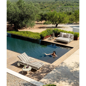Unwind in luxury with the Nalu striped sun lounger from Palomba-Serafini. With armrests and a retro design, this multi-stage adjustable sun bed offers total comfort by the pool. Elevate your poolside experience with Nalu.