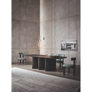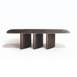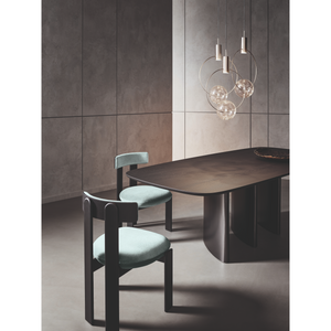 Elevate your dining experience with the Three-Legged Wooden Dining Table by Bonaldo Louver. Designed by Alain Gilles, its theatrical presence evokes an entrance to an ancient temple. The three legs give a sense of dynamism, creating fascinating perspective effects with light. A focal point for any space, its character reveals itself from different angles.