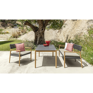Weave Rope Outdoor Loveseat | Talenti Dolcevita - Teak Silver/White is backordered and will ship as soon as it is back in stock.
