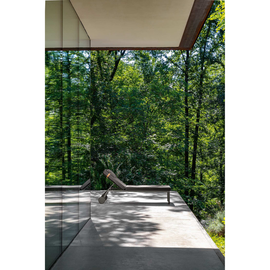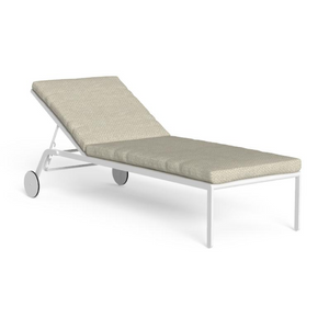 This sun bed, equipped with wheels, brings out the elegant and linear design typical of the whole collection. The airy and well-defined lines that characterize the aluminum structure catch the eye, while the minimal volume of the cushion, with removable covers and quick dry foam padding, is valorized by the bold and warm weaving of the selected texture. Fine and functional, this sun bed is perfect to enjoy an outdoor relaxing moment.