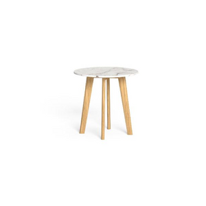 Wood Legged Outdoor Coffee Table | Talenti CleoSoft - 20"Dia x 20"H / Natural Teak / Natural Teak (Wood) is backordered and will ship as soon as it is back in stock.