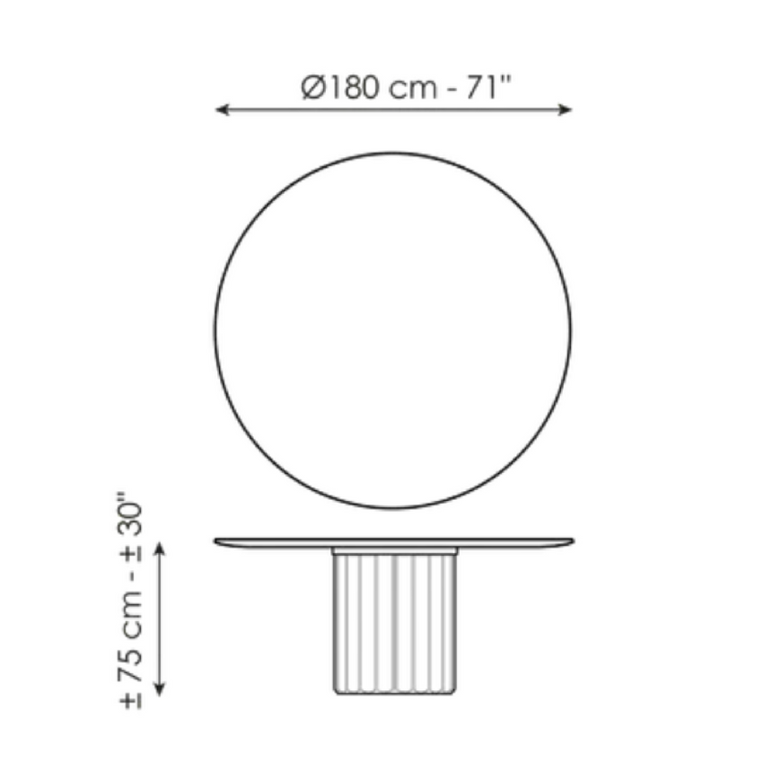In the Dorian modern oval dining table, flexible qualities and geometric simplicity establish an interplay through contrast. The large top - made of ceramic, marble or wood - rests on a base with a striking sculptural character, consisting of an elegant and surprising elongated cylinder that recalls the shape of a Greek column and which pushes the design towards ancient architectural horizons.