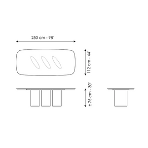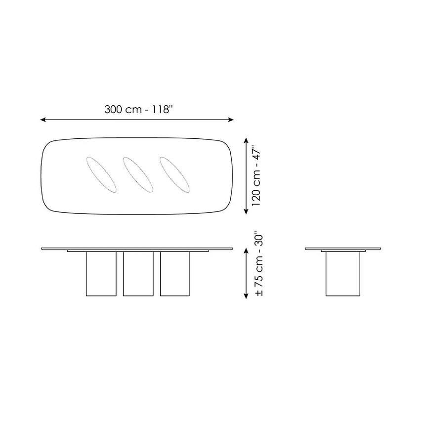 Designed by Alain Gilles, the Louver Table reveals its character little by little, offering a different perspective depending on the angle from which it is observed. With its strong theatrical presence making it the focal point of any environment, the Louver Table interprets the vision of the designer, who wants to evoke an imaginary passage, ideally the entrance to an ancient temple, in which light plays a crucial role in creating suggestive shadows on the floor. The three legs give the table a feeling of dynamism, allowing the light to create fascinating perspective effects which make the legs appear either slender or imposing, delicate curves or generous shapes, depending on the point from which you look at it. The design of the table is enhanced by the different finishes available, both in the single-material and multi-material versions. The single-material version is available in hand-trowelled clay or with a wooden top and base. Alternatively, it is possible to choose from numerous variations: the top is available in ceramic, marble or wood and can be combined with a metal or wooden base (Louver Table Wood), creating a contrast of considerable scenic impact with the solid elements of the base.